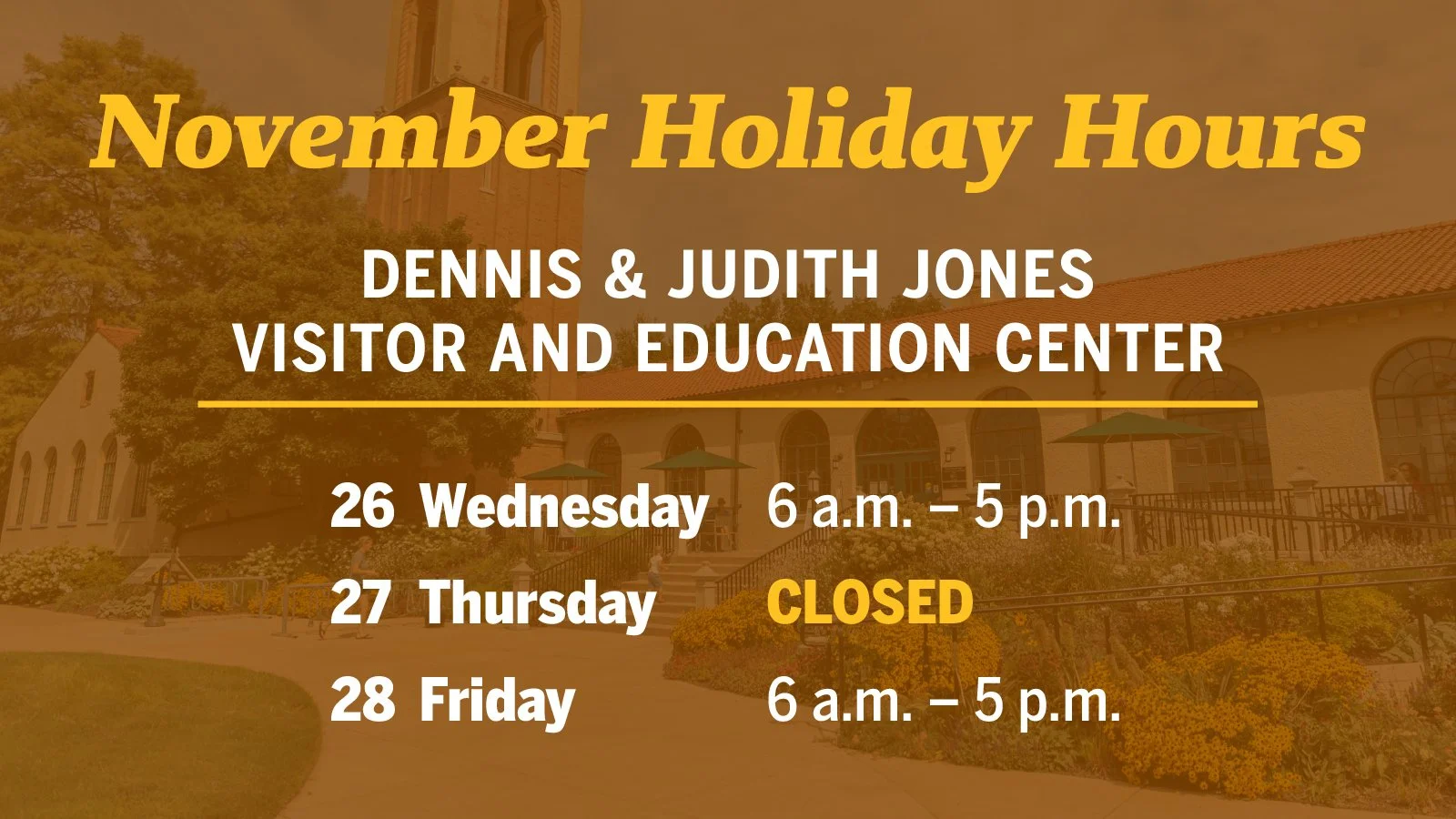 November holiday hours for the Dennis & Judith Jones Visitor and Education Center
